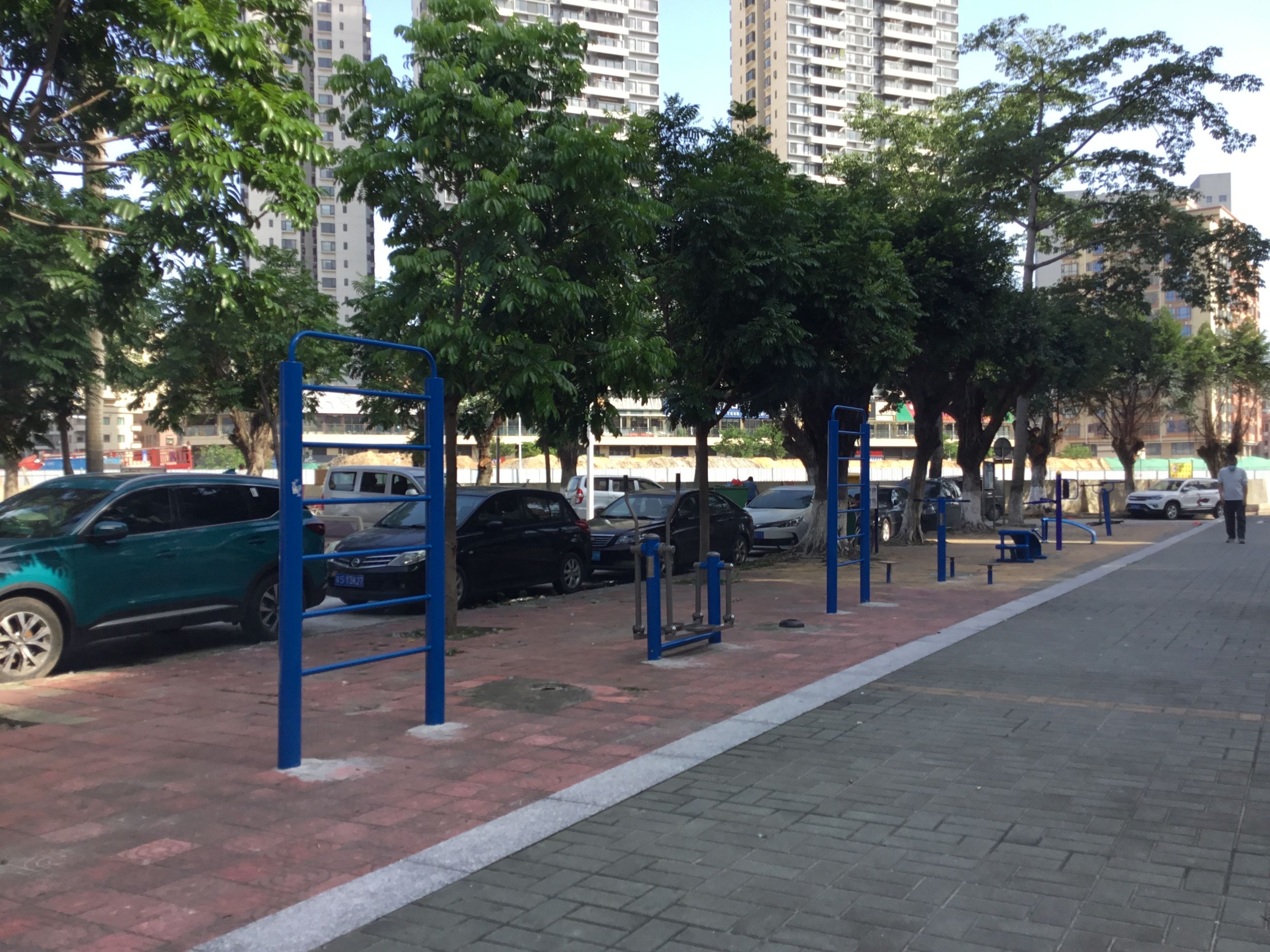 包括:单人健骑机一套,大转轮一套,肋木架一套,腰背按摩器一套,双杠一套,肩关节训练器一套,单人腹肌板一套,双位单杠一套,健身车一套。