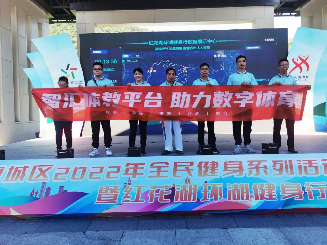 惠城区于8月8日上午8:00在惠城区一场三馆文化馆广场举行“强国复兴有我”惠城区2022年全民健身系列活动启动仪式暨红花湖环湖健身行活动,众多健身团队参加。