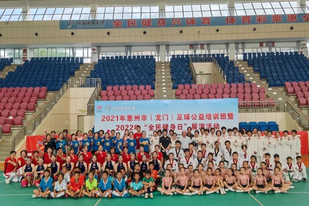 龙门县在龙门体育馆举办了2022年“全民健身日”展演活动,进行了健身项目展示及龙门县足球公益培训班。