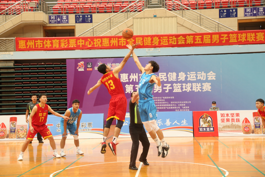 惠州市全民健身运动会第五届篮球联赛的比赛现场