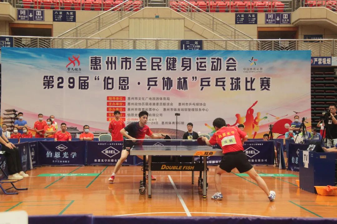 惠州市全民健身运动会第29届“乒协杯”乒乓球比赛的比赛现场