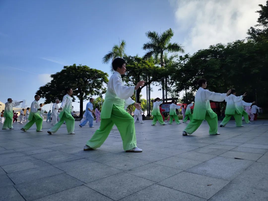 8月8日上午,在红花湖景区,活力四射的健身操、飘逸潇洒的太极功夫扇、激情澎湃的广场舞排舞表演,正式拉开惠州庆祝全国第十四个“全民健身日”健身展示活动暨惠州市全民健身运动会启动仪式的序幕。